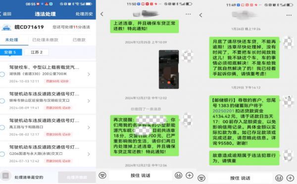 本以为风波平息,张华柱却接连遭遇更棘手的问题:蔡先生违背 “自己用车” 的承诺,不仅将车辆交给有醉驾高危行为的杨女士使用,二人使用期间还频繁违规停车 —— 车辆多次随意停靠在小区消防通道、主干道非机动车道等公共区域,先后收到十余张违章停车罚单,辖区交警更是多次致电作为登记车主的张华柱,要求其立即挪车消除隐患。此举不仅漠视道路交通安全与公共秩序,更将张华柱置于潜在法律风险中,尽显对他人权益的无视;更令其崩溃的是,车贷两度出现人为逾期,邮储银行致电警告,身为企业法人的张华柱面临征信危机。蔡、杨二人明知车贷逾期会影响张华柱信用,违章罚单最终需登记人承担,却故意放任,已然构成对承诺的恶意背弃。
